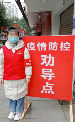 疫情发生后,2019级护理学1班的刘绪玲同学主动投身抗议工作,积极加入宜宾珙县巡场新桥防疫点的志愿服务活动中。每天在检查位点站岗值守,做好出入口的人员和车辆登记情况,向辖区内的群众宣传防疫知识,增强他们的防护意识,提醒他们无必须不出门,出门必须带口罩,协助社区工作人员悬挂宣传条幅,并配合社区工作人员为无物业小区的楼道进行消毒杀菌。