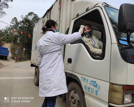 由于离家距离较远,每天早上需要六点半起床,她协助交警检查行人的通行证,登记路口通过外来车辆的基本信息;利用电子体温计测量所有通过人群的体温;同时还协助各村村长完善通行证的信息,避免出现一天多次出门的行人,以免增加感染机会;当然她也会劝导行人少出门,并进行讲解事态的发展,说明少出门的重要性。