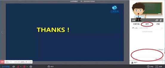 3、老师点上课后方可以看到老师视频头像和文档,聊天区可以发送文字信息。问答区可以提问。