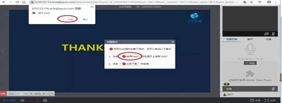 2、打开教室后,如果提示Flash加载不成功,可以按照提示启用flash或下载安装Flash后观看。