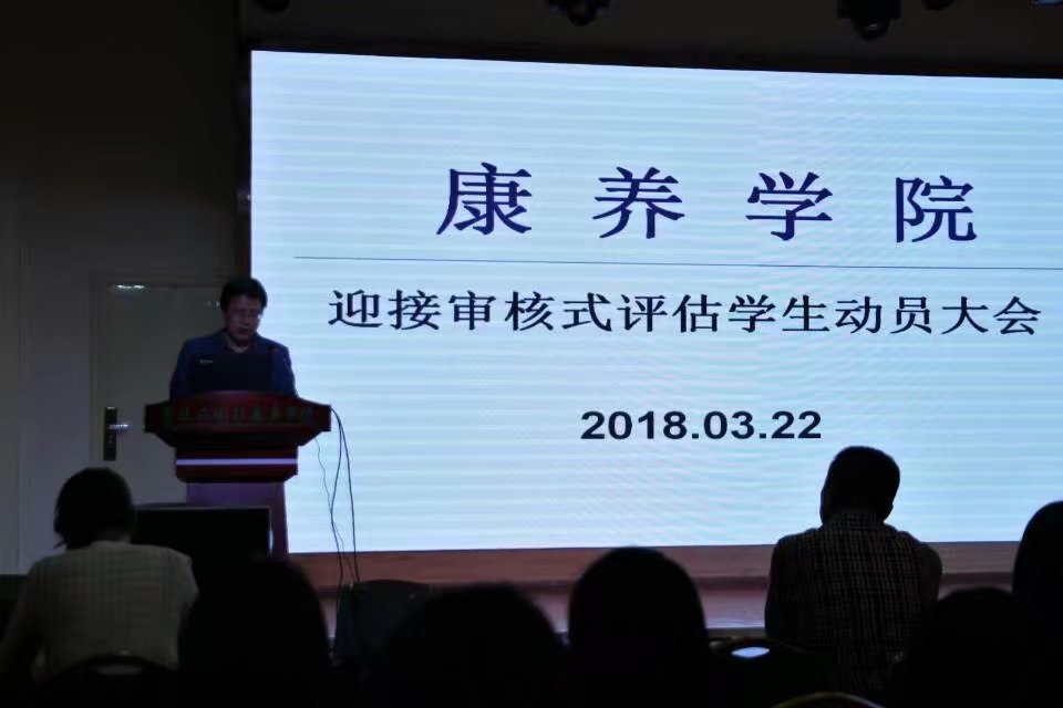 为确保全体学生和学工干部以最佳的精神风貌迎接本科教学工作审核评估,康养学院于3月22日晚在东苑会堂召开迎接本科教学工作审核评估学生动员大会。康养学院党支部副书记杨领航、党支部副书记兼副院长赵相瑜参加会议。